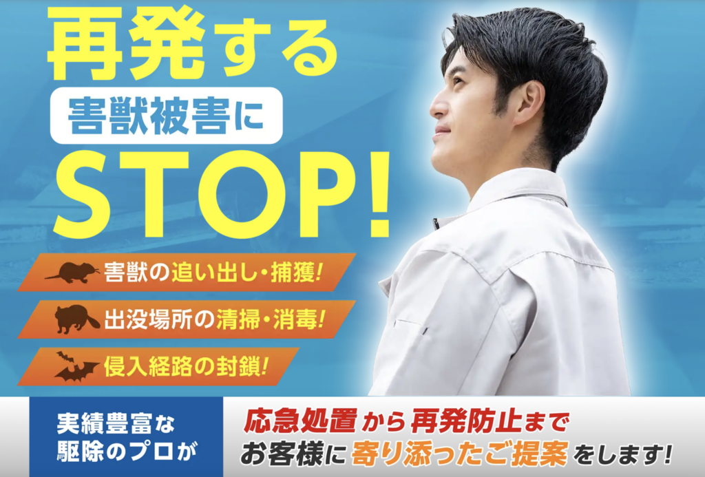 実際に被害がある場合は、専門の害獣駆除業者に相談するのが安全です。