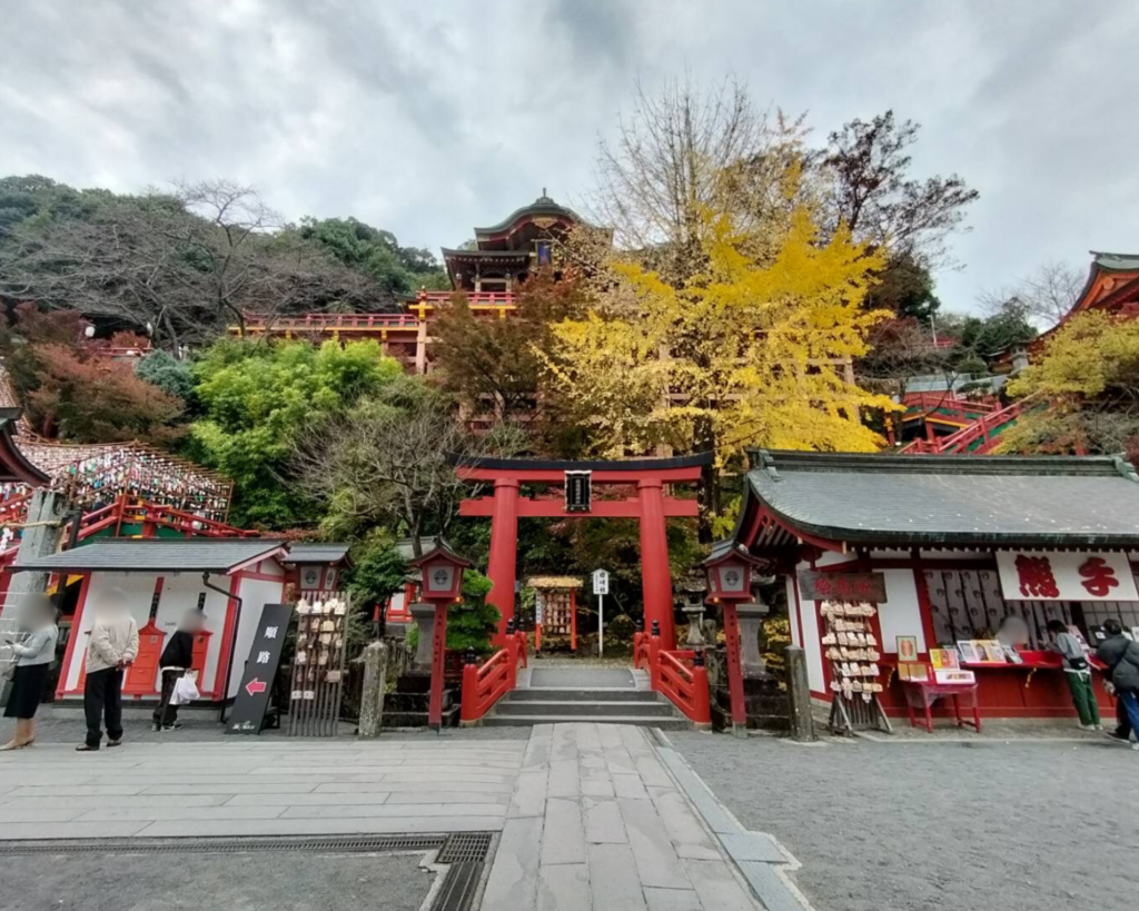 朱色の楼門と社殿群は、実際に訪れるとアニメ以上の迫力を感じます。